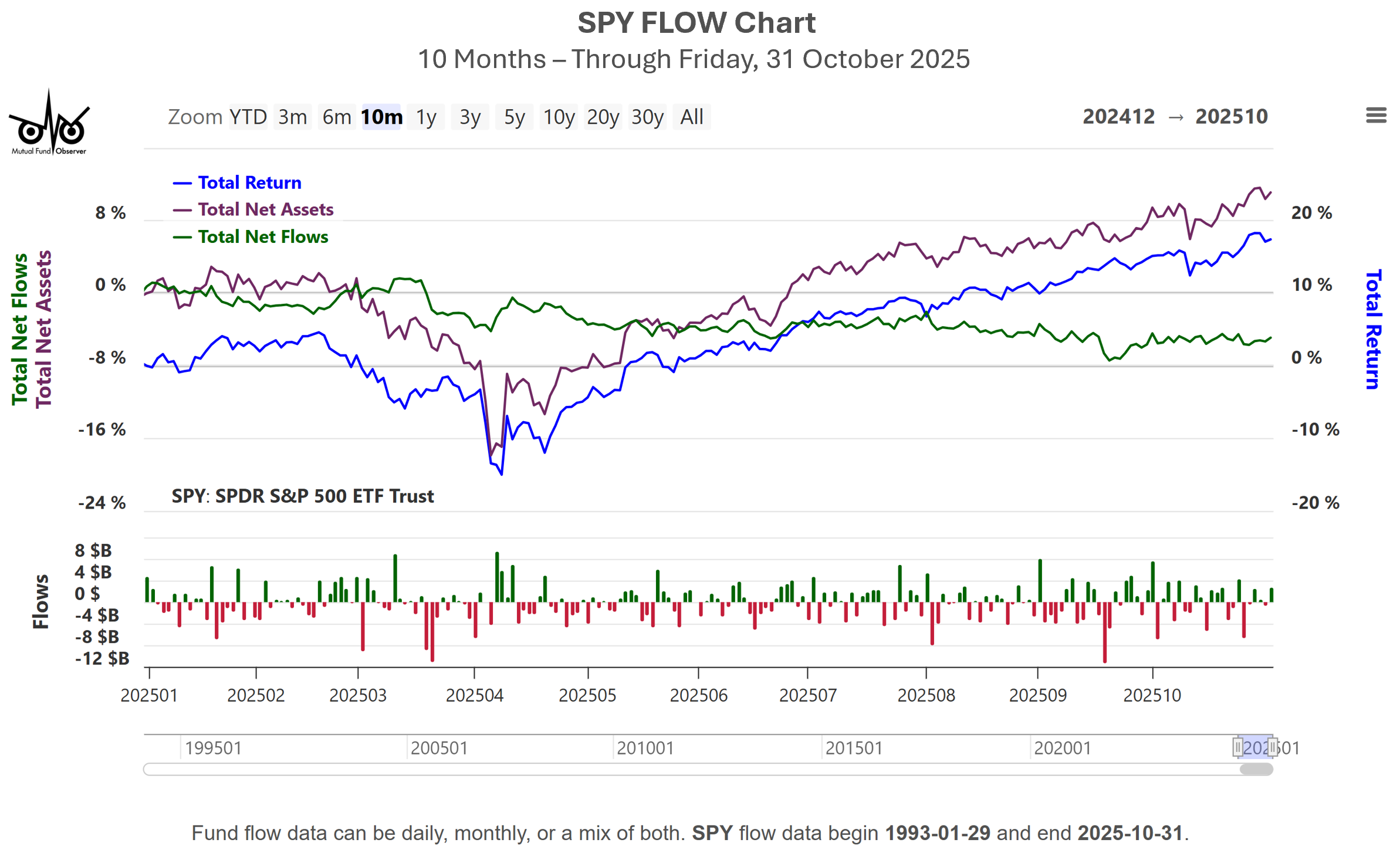 Performance updates are posted monthly, typically on first Saturday of the month. Month-to-date performance and other ancillary info, like holdings, are updated weekly. Flows are updated 1st and 3rd Saturday of the month, but our comprehensive FLOW tool updates daily.