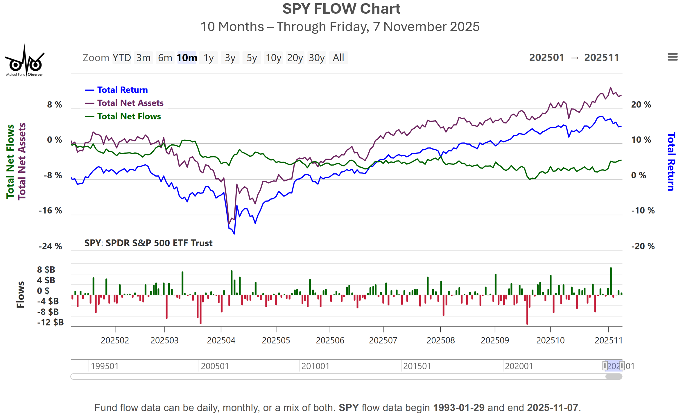 Performance updates are posted monthly, typically on first Saturday of the month. Month-to-date performance and other ancillary info, like holdings, are updated weekly. Flows are updated 1st and 3rd Saturday of the month, but our comprehensive FLOW tool updates daily.