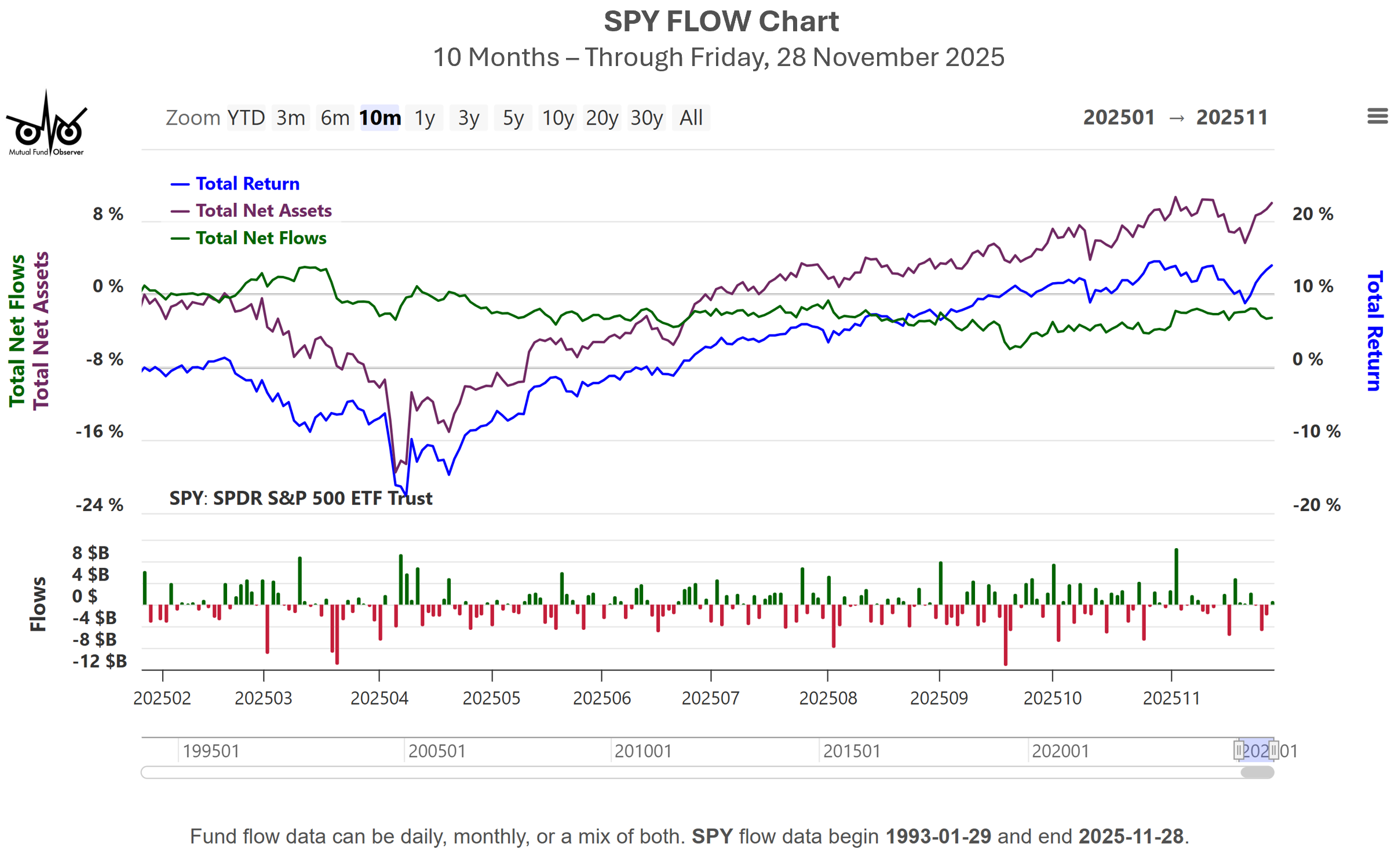 Performance updates are posted monthly, typically on first Saturday of the month. Month-to-date performance and other ancillary info, like holdings, are updated weekly. Flows are updated 1st and 3rd Saturday of the month, but our comprehensive FLOW tool updates daily.