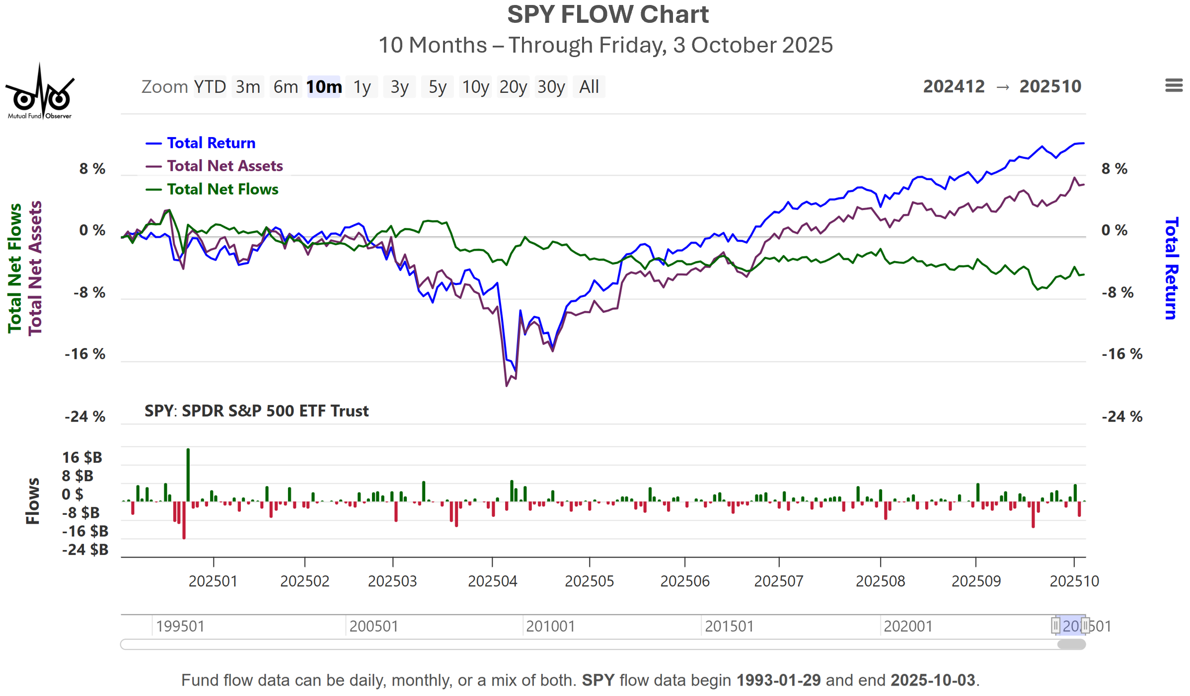 Performance updates are posted monthly, typically on first Saturday of the month. Month-to-date performance and other ancillary info, like holdings, are updated weekly. Flows are updated 1st and 3rd Saturday of the month, but our comprehensive FLOW tool updates daily.