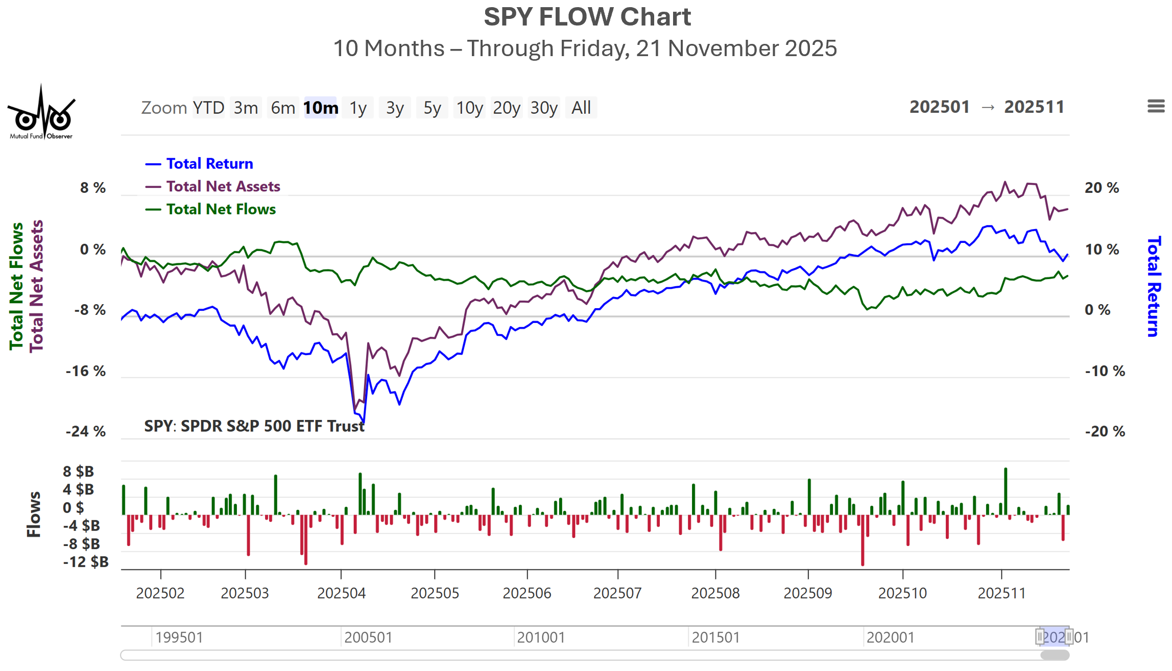 Performance updates are posted monthly, typically on first Saturday of the month. Month-to-date performance and other ancillary info, like holdings, are updated weekly. Flows are updated 1st and 3rd Saturday of the month, but our comprehensive FLOW tool updates daily.
