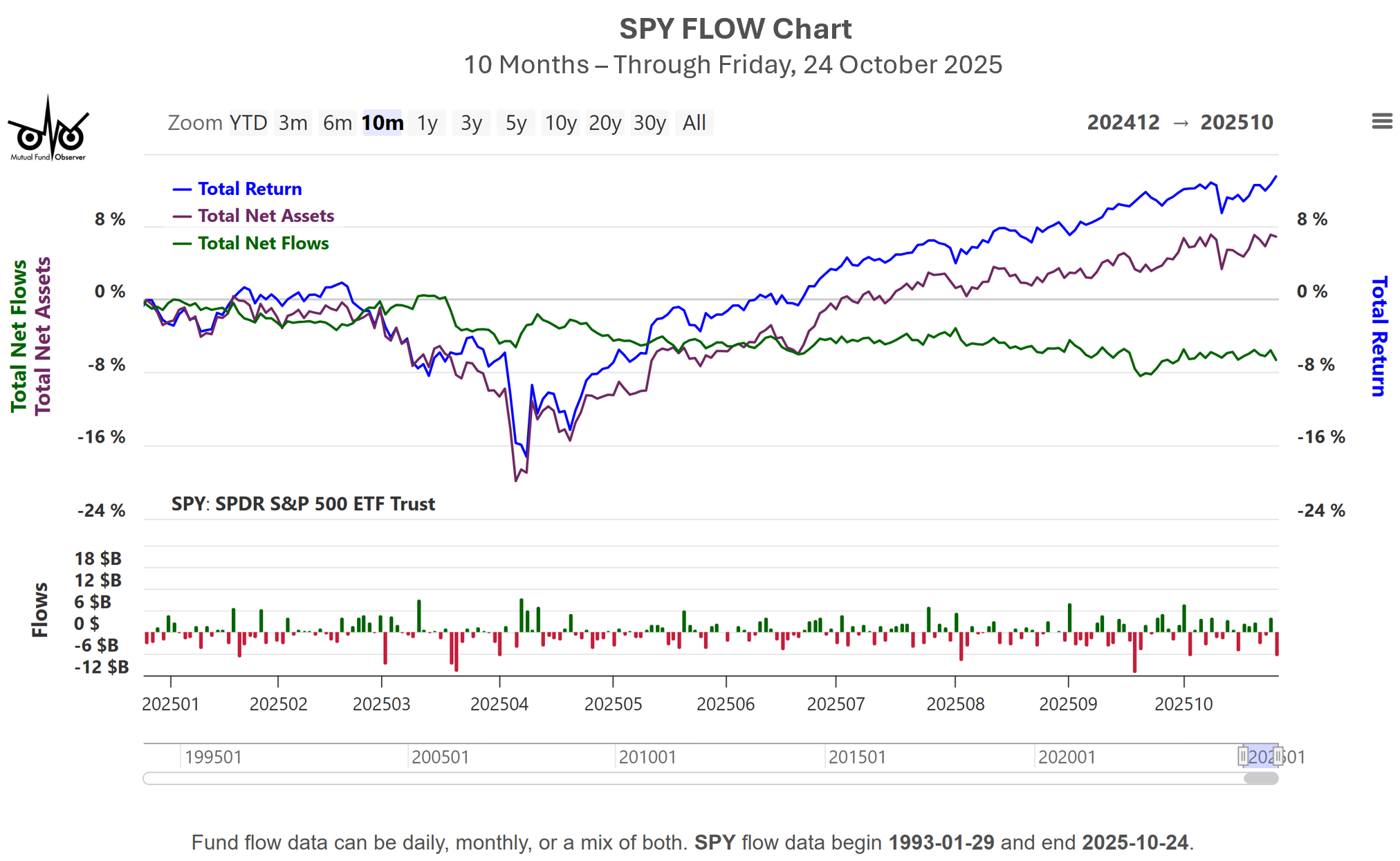 Performance updates are posted monthly, typically on first Saturday of the month. Month-to-date performance and other ancillary info, like holdings, are updated weekly. Flows are updated 1st and 3rd Saturday of the month, but our comprehensive FLOW tool updates daily.