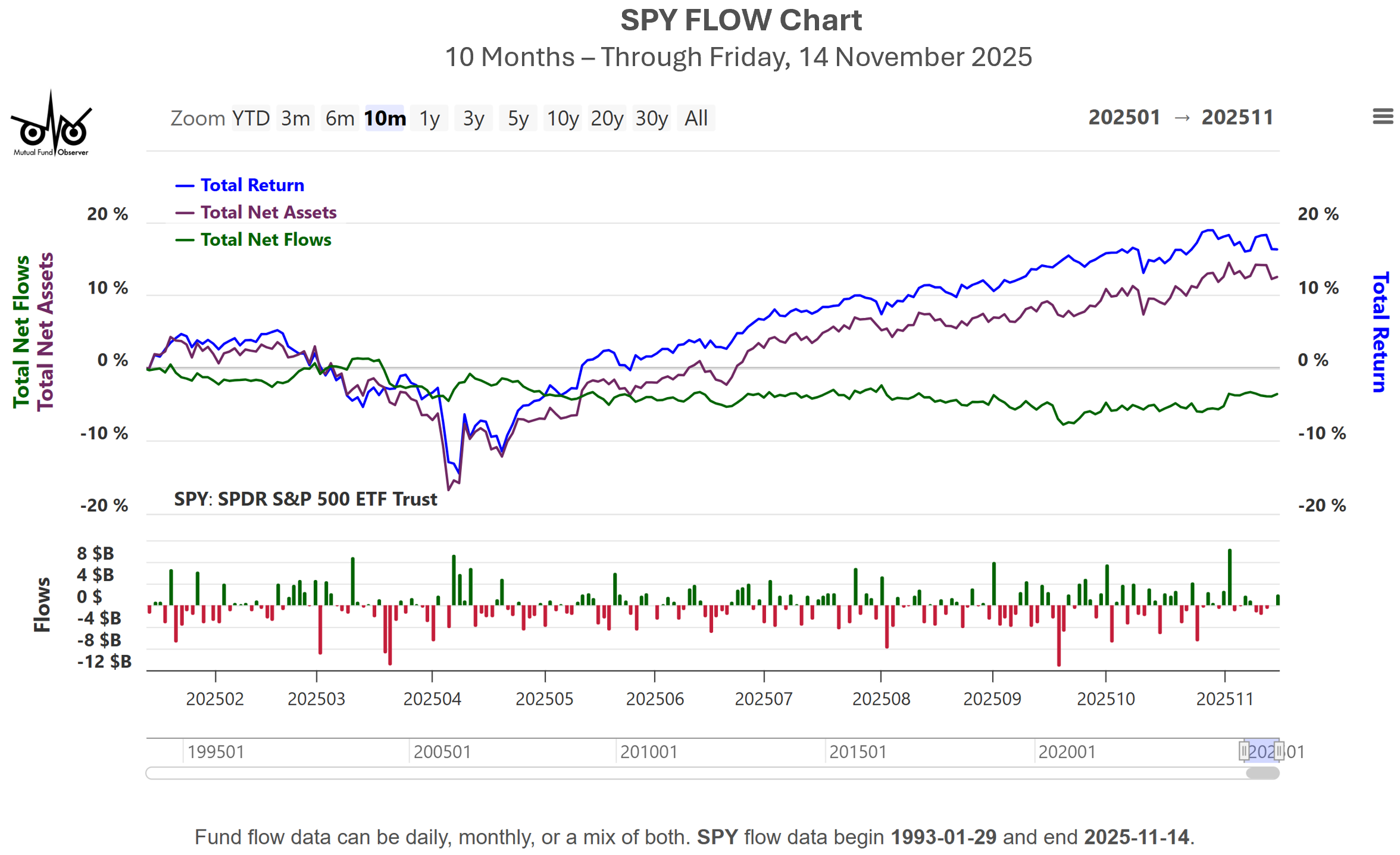 Performance updates are posted monthly, typically on first Saturday of the month. Month-to-date performance and other ancillary info, like holdings, are updated weekly. Flows are updated 1st and 3rd Saturday of the month, but our comprehensive FLOW tool updates daily.